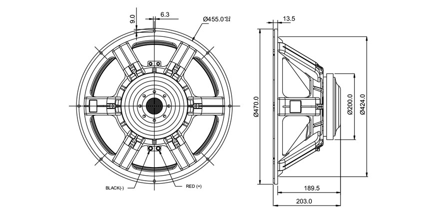 - Triple roll surround allows long excursion